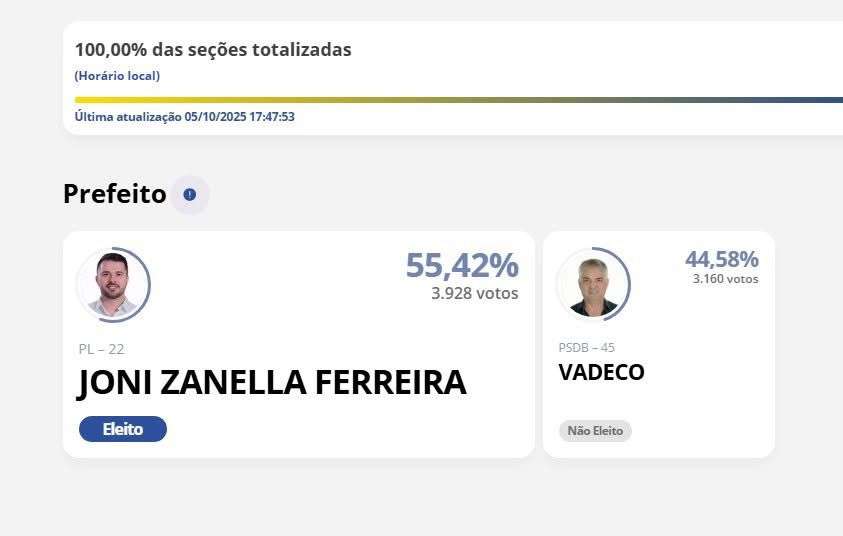 Joni Zanella Ferreira, do Partido Liberal (PL), foi eleito prefeito de São João, no Sudoeste do P...